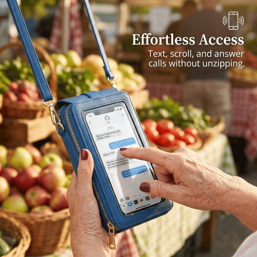 Say hello to true hands-free freedom. This chic, compact touchscreen crossbody is designed to keep your smartphone instantly accessible and your daily essentials perfectly organized—without the shoulder strain.